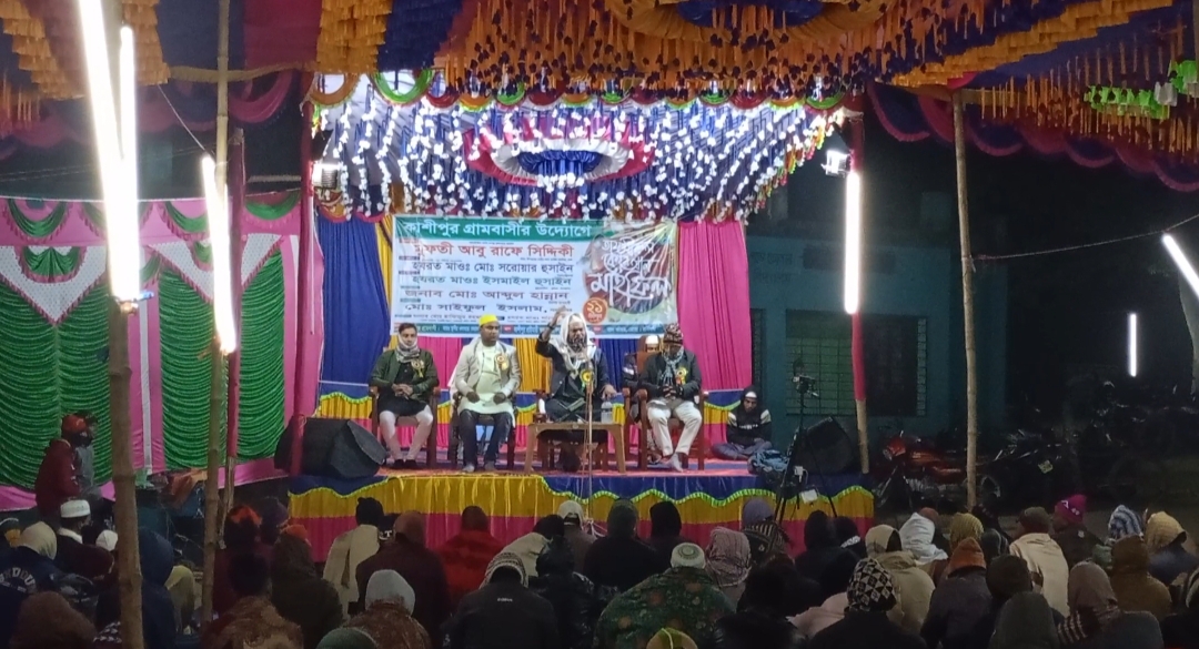 ঝিনাইদহের মহেশপুর উপজেলার কাশিপুর গ্রামবাসীর উদ্যোগে ৬ষ্ঠ বার্ষিক তাফসীরুল কোরআন মাহফিল অনুষ্ঠিত হয়েছে। রবিবার (২১ ডিসেম্বর ২০২৫ ইং) বাদ আসর কাশিপুর সরকারি প্রাথমিক বিদ্যালয় প্রাঙ্গণে এ মাহফিলের আয়োজন করা হয়।