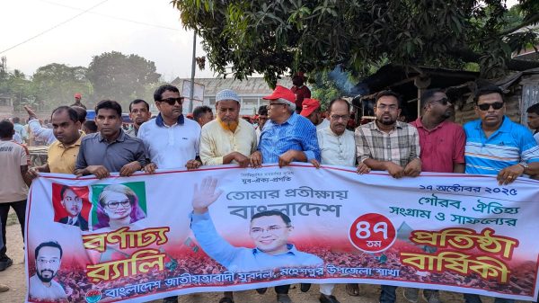 মহেশপুর (ঝিনাইদহ) প্রতিনিধি: বাংলাদেশ জাতীয়তাবাদী যুবদলের ৪৭তম প্রতিষ্ঠাবার্ষিকী উপলক্ষে ঝিনাইদহের মহেশপুর উপজেলা যুবদলের উদ্যোগে বর্ণাঢ্য র্যালি ও আলোচনা সভার আয়োজন করা হয়। এ উপলক্ষে আজ মঙ্গলবার বিকালে উপজেলার বিভিন্ন স্থান